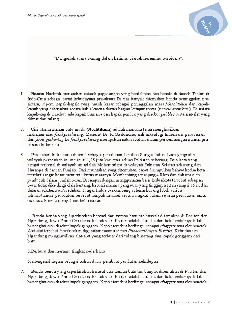 Kunci Modul Pra Aksara Food Gathering Ke Food Producing